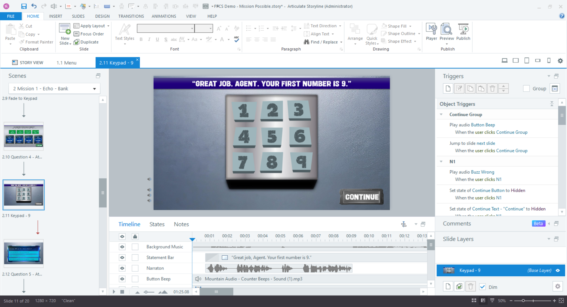 In the eLearning course/game titled "Balance the Mission," participants are immediately thrust into a Mission Impossible-inspired adventure featuring captivating visual and sound effects. Their first task is to assemble a team, setting the stage for an immersive experience.