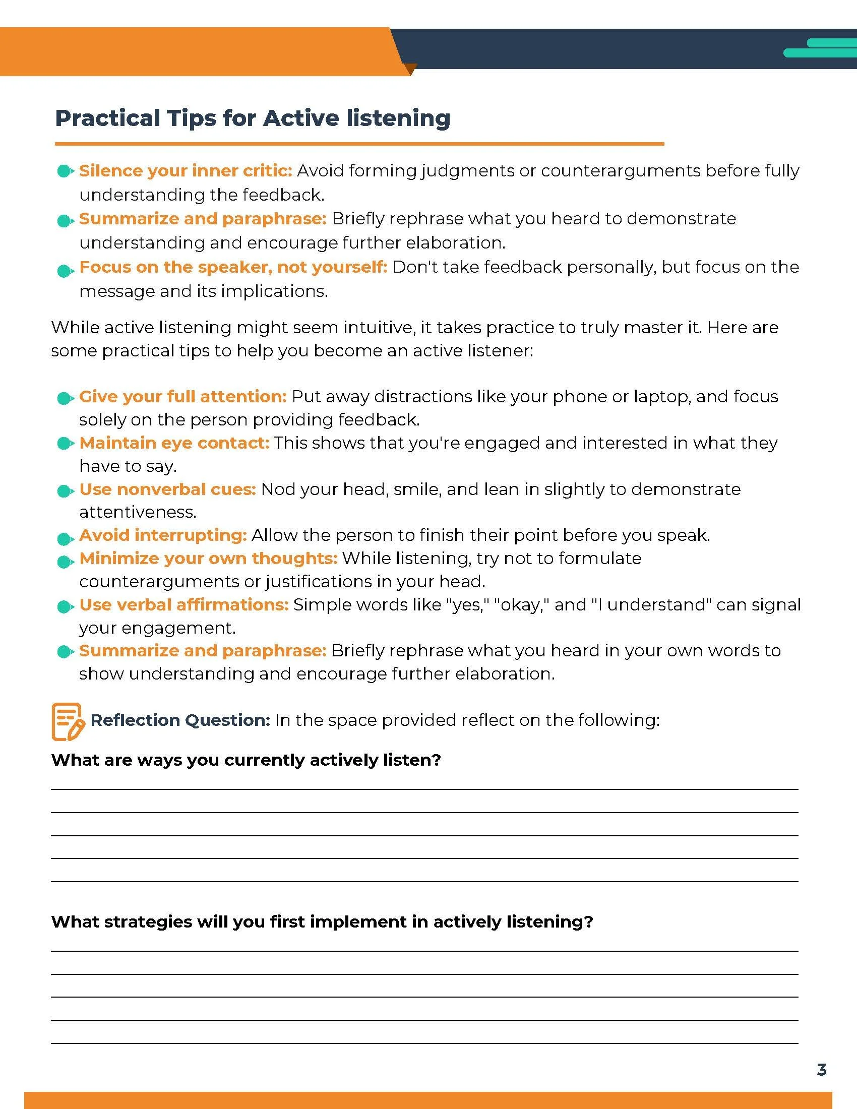 Receive feedback: Build resilience and emotional intelligence to interpret feedback objectively and identify actionable insights.