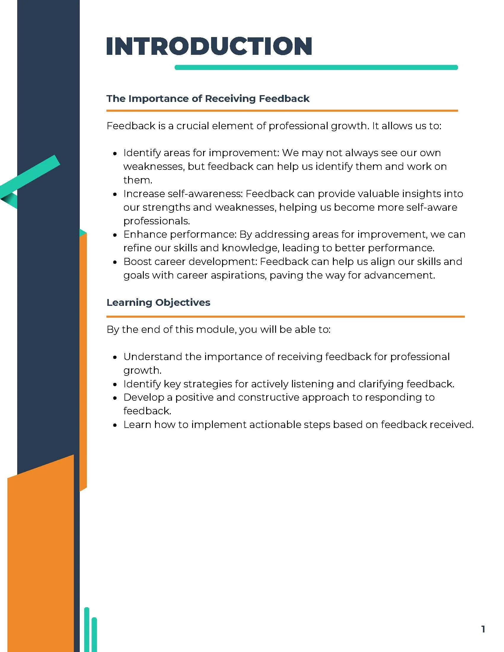 This interactive course tackles feedback challenges head-on, providing a structured and practical approach to receiving and giving feedback. Through real-world scenarios, interactive exercises, and expert guidance, the learner will gain the following skills.
